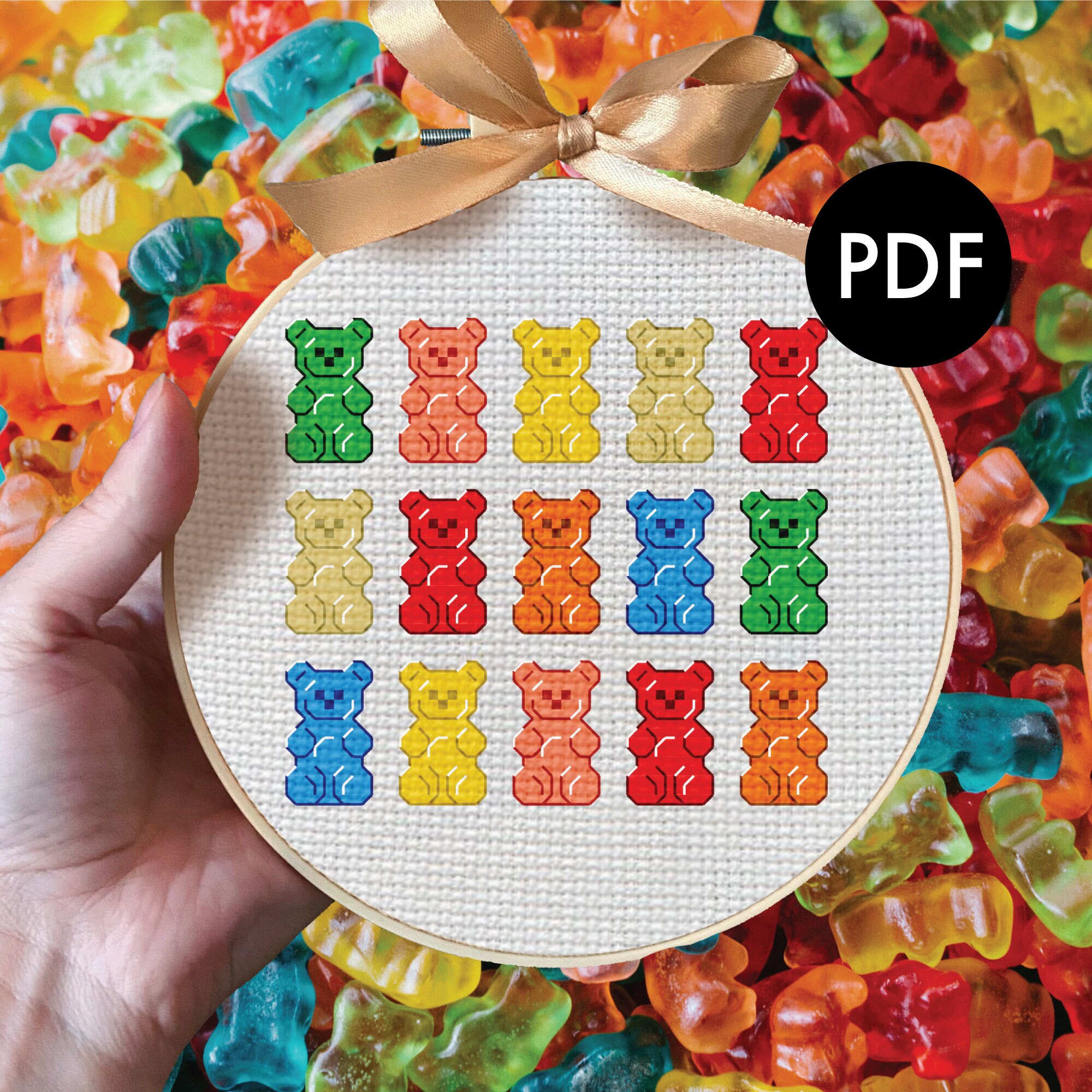 Gummy Bears Jelly Cute Candy 80s 90 S Vintage Cross Stitch Etsy